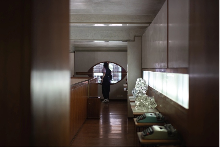 另一處參訪的 Scarpa 建築是Tomba Brion墓園,這是一個與傳統墓園大不相同的空間。從進入口就能感受到一種凝重而安靜的氛圍,內部的小教堂為對稱構造,象徵超越宗教界線,接納不同信仰的使用者。整個墓園具有強烈的敘事性,隨著我們的行進,每一處轉角都帶來不同的視覺與觸覺變化。在墓園的花園中,有一大片草地,當時剛好有小孩在上面玩耍,這也正是 Scarpa 所期望看到的畫面:在家屬哀悼的同時,生命也以另一種形式延續著。雖然死亡無法逃避,但墓園空間讓人感受到對生命的讚嘆。