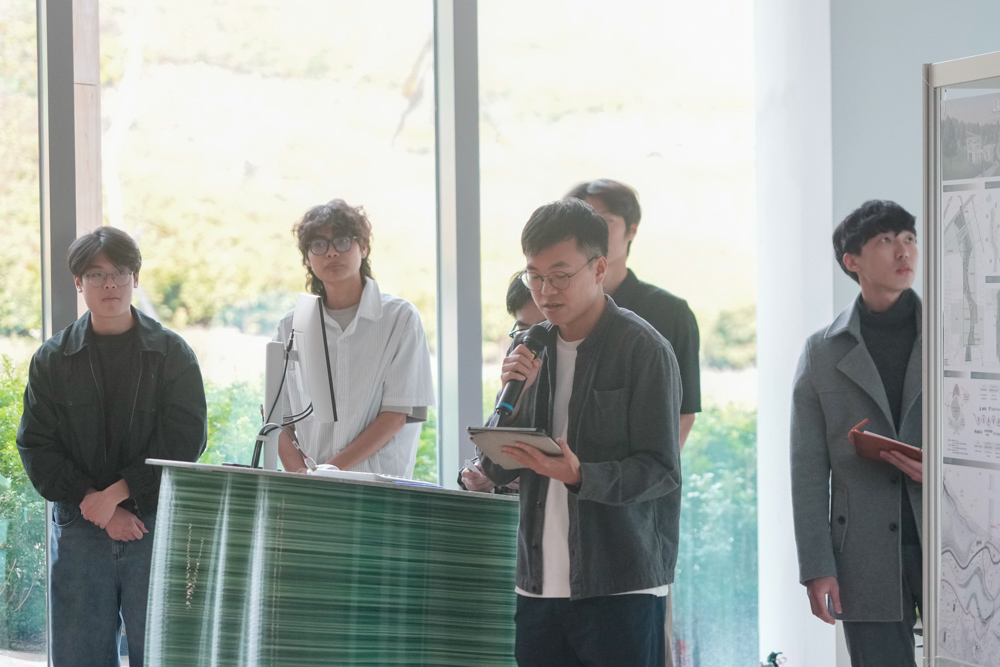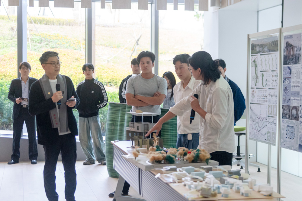 決選過程比照國際競圖規格,入圍團隊除10分鐘簡報外,更需面對評審團長達25分鐘的深度講評。在「AI 書屋」的主題下,學生試圖回應數位學習與社區共享的新型態需求。評審們則從都市尺度、科技應用到實務可行性,提出犀利且精闢的建議,協助學子在創意構想與專業落實間取得平衡。